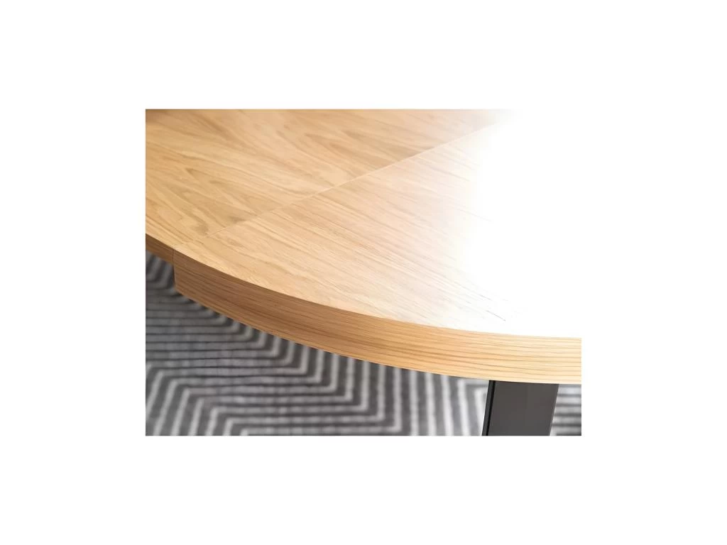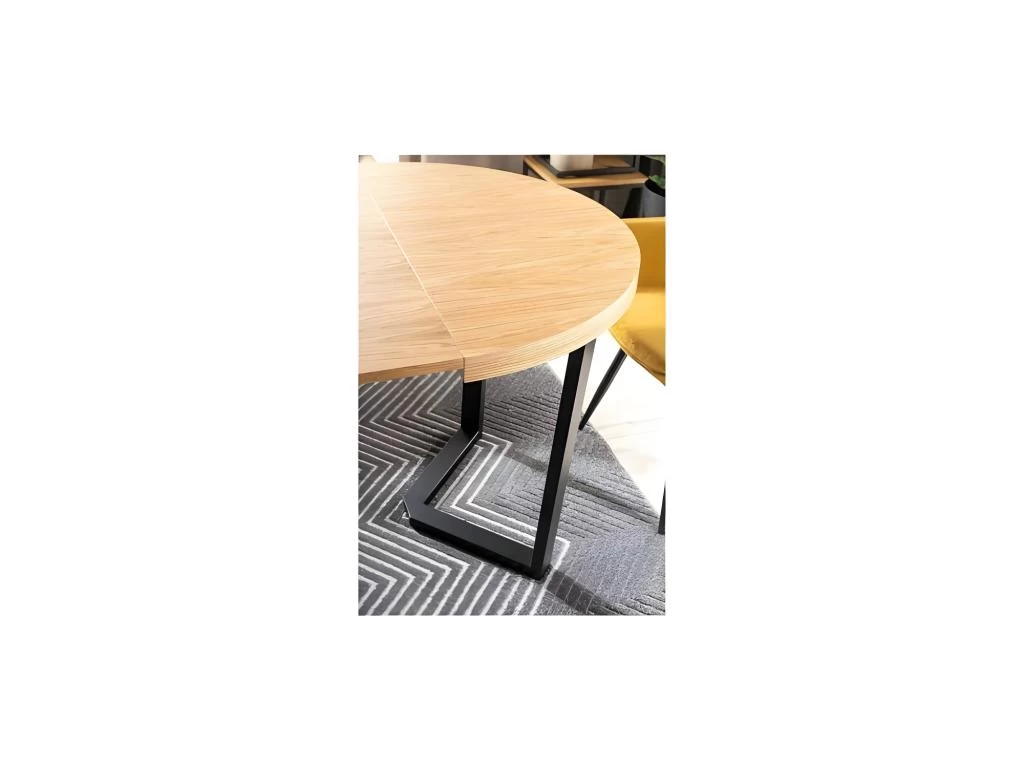 Vous voulez transformer l’ambiance de votre espace repas ? Cette table à manger extensible vous conviendra. Notre descriptif vous détaille toutes les caractéristiques de cette table à manger extensible. Une table admirable Dotée d’un plateau rond en placage naturel posté sur des pieds arqués en métal, cette table à manger ronde extensible adopte un style moderne et minimaliste. Elle deviendra le nouveau point central de votre salle à manger. Recouverte d’une finition chêne et noire, cette table à manger ronde extensible trouvera sa place dans votre décoration. Une table facile Avec trois plateaux supplémentaires de 50 cm rangés en son centre, cette table à manger extensible se propose de vous offrir l’espace nécessaire dont vous avez besoin lors des festivités et événements extraordinaires à la maison. Après extension de cette table à manger ronde de 100 cm, vous aurez facilement créé une table ovale de 250 cm qui peut recevoir jusqu’à 12 personnes. Une table immuable Montée à partir de matériaux sélectionnés avec soin, vous pourrez toujours compter sur cette table à manger ronde extensible au quotidien.
