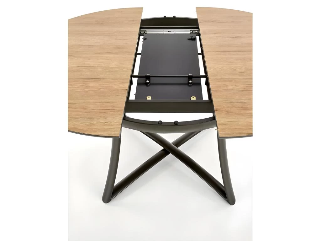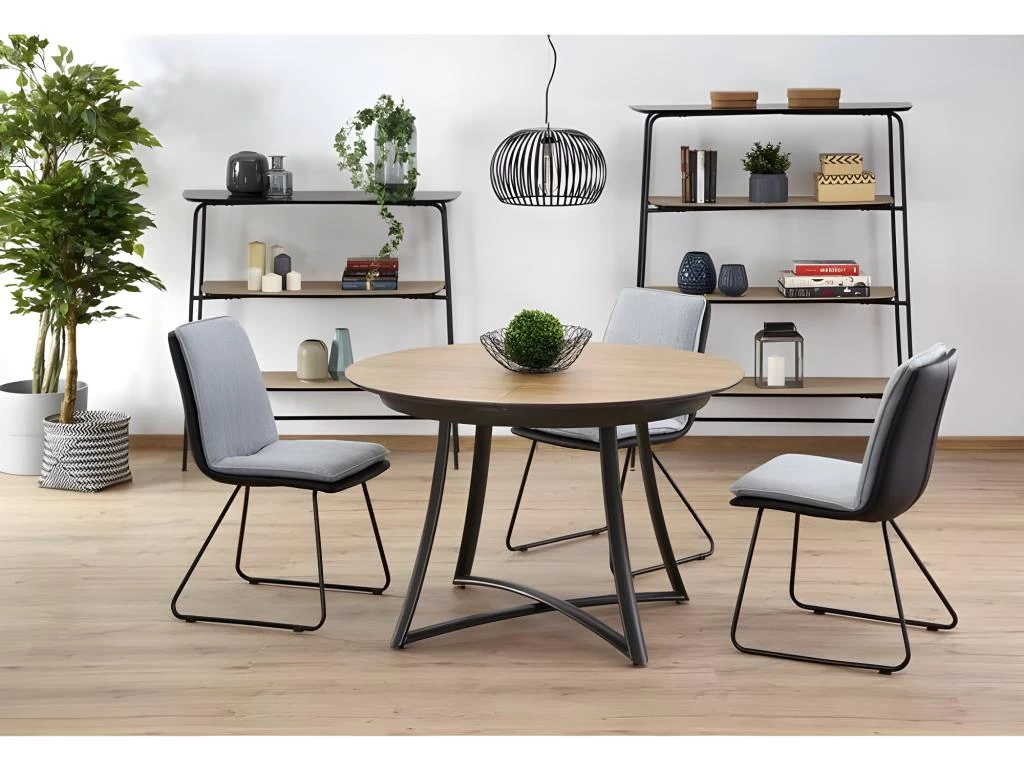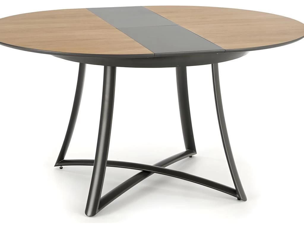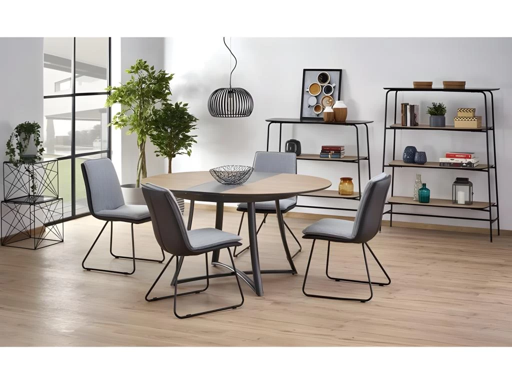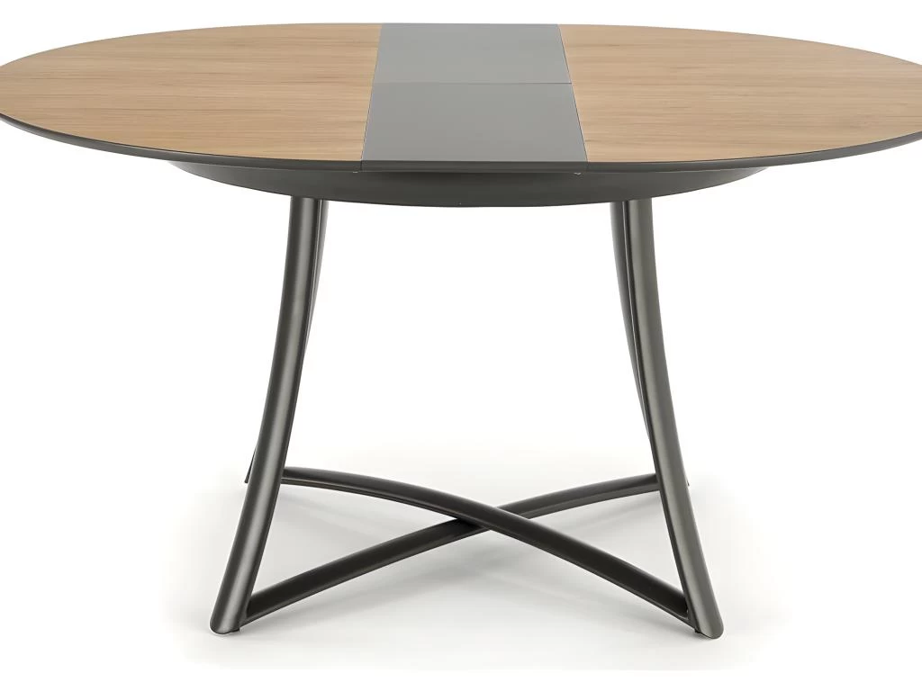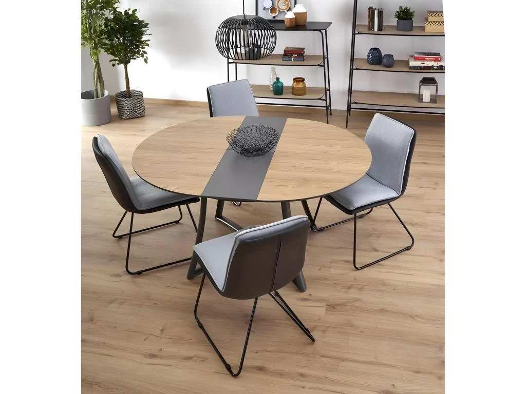 Choisissez un design original ! Avec son plateau en bois rond, cette belle table donnera un effet plus spacieux mais à la fois chaleureux à votre intérieur. Son mélange de couleurs bois et noir viendra mettre à votre pièce du contraste. Tandis que le coloris de son plateau chêne doré apportera de la chaleur à votre pièce, la forme de son piétement noir anthracite y donnera du caractère. Sa forme ronde permettra d’accueillir vos invités en toute convivialité. Optez pour la qualité ! Il est facile à nettoyer. Un chiffon humide suffit. De plus, son piétement en acier vous assure une bonne stabilité. Un montage en toute simplicité La table à manger est à monter soi-même. Une notice de montage vous explique clairement toutes les étapes d’assemblage. Des accessoires de montages sont fournis. Matériaux : MDF laminé MDF laqué Acier thermolaqué Dimensions et poids: Longueur : 118-148 cm Largeur : 148 Hauteur : 76 cm Poids : 47.30 kg