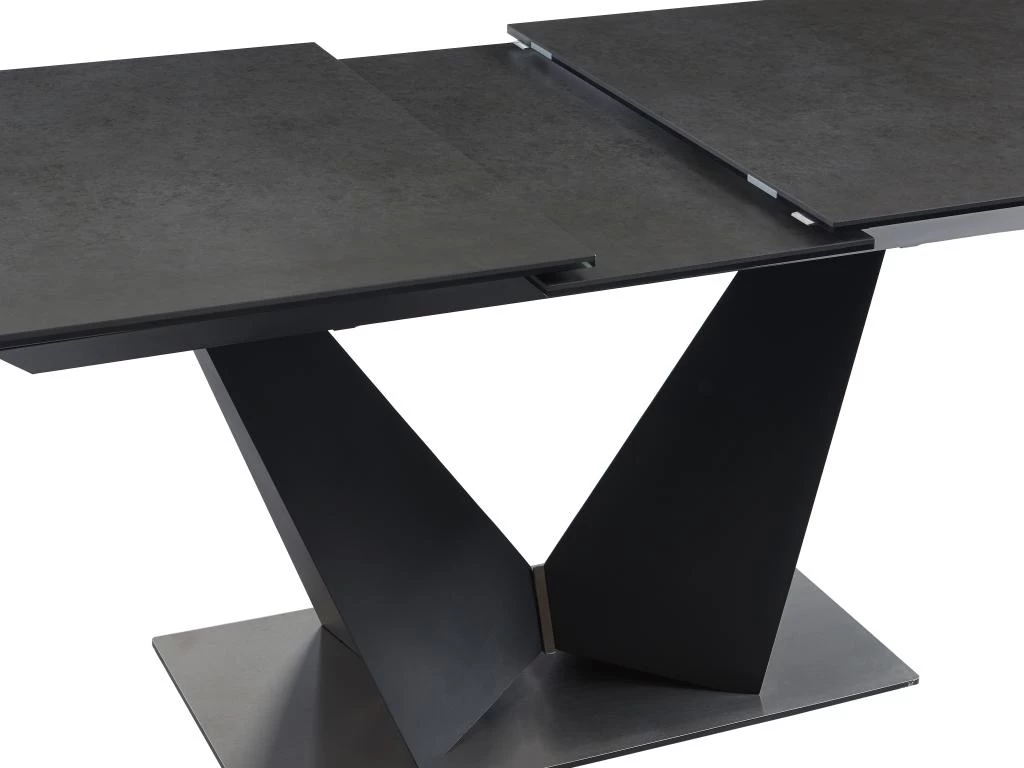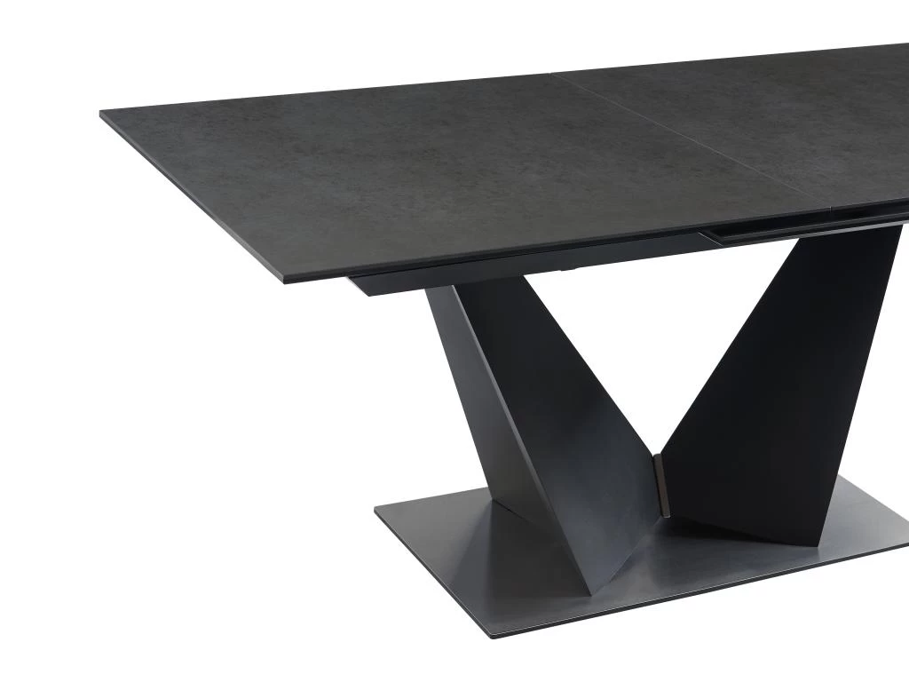 La table à manger OLETIA est composée d’un plateau extensible en céramique et verre trempé et d’un majestueux piètement en métal qui repose sur une base en acier inoxydable. Ses matières résistantes lui assureront une certaine longévité. Enfin, son coloris fait d’elle un meuble aussi bien tendance qu’intemporel.