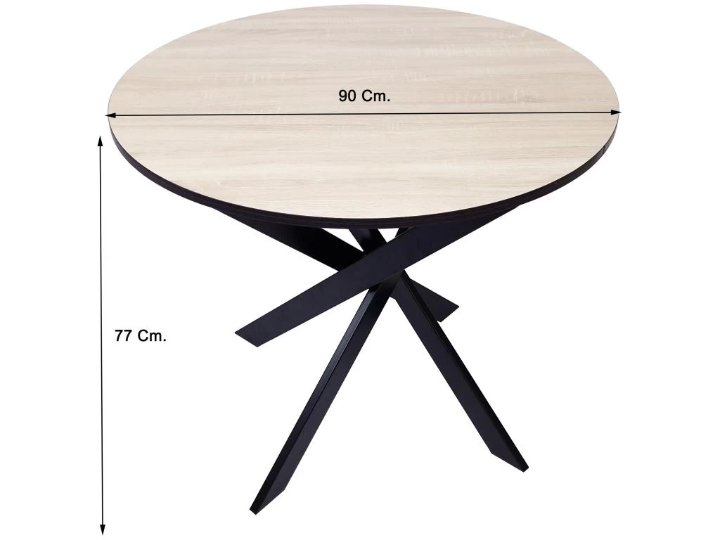 TABLE À MANGER FIXE: il s’agit d’un meuble qui ne peut manquer dans aucune maison. Son design unique s’adapte à tous les intérieurs et apporte une touche de modernité qui se marie parfaitement avec le style décoratif. Avec un diamètre de 90 cm, elle vous offre la possibilité d’accueillir jusqu’à 4 convives.