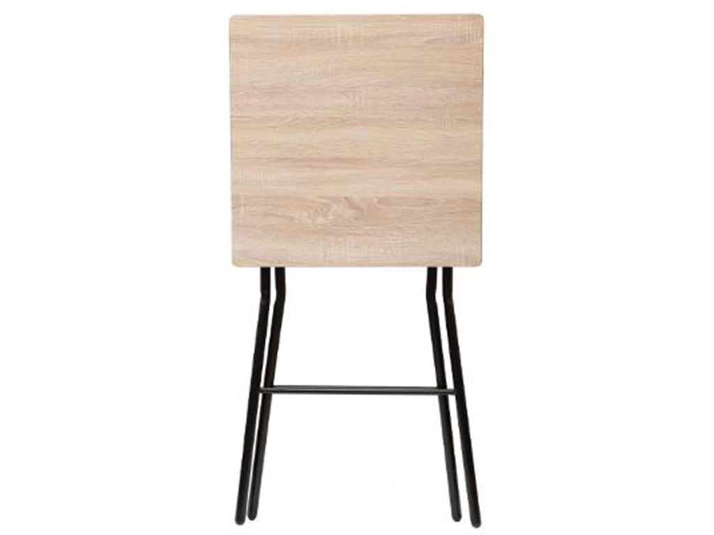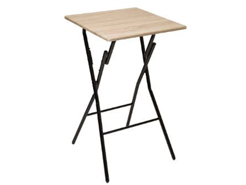 Table de bar pliante en métal coloris gris, facile à ranger, pour la nettoyer essuyer avec un chiffon humide puis terminer en essuyant avec un chiffon sec. Ne pas s’asseoir sur le plateau. Dimensions : L.60 x l.60 x H.103 cm – Matière: MDF/métal – Couleur: naturel