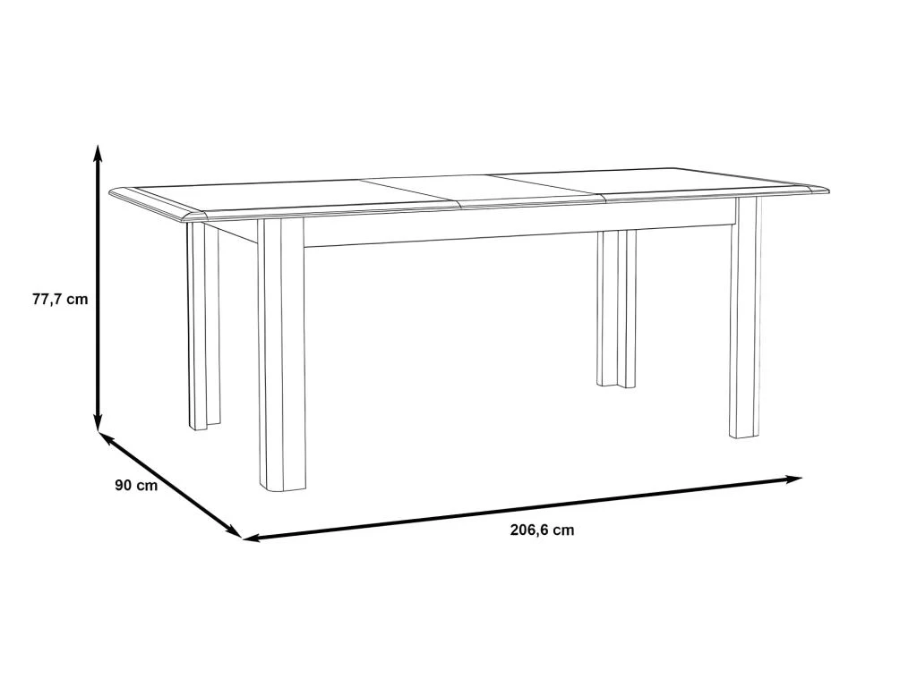 - DIMENSIONS GENERALES APPROXIMATIVES : longueur 160 cm (206 cm avec rallonge) x hauteur 78 cm x profondeur 90 cm