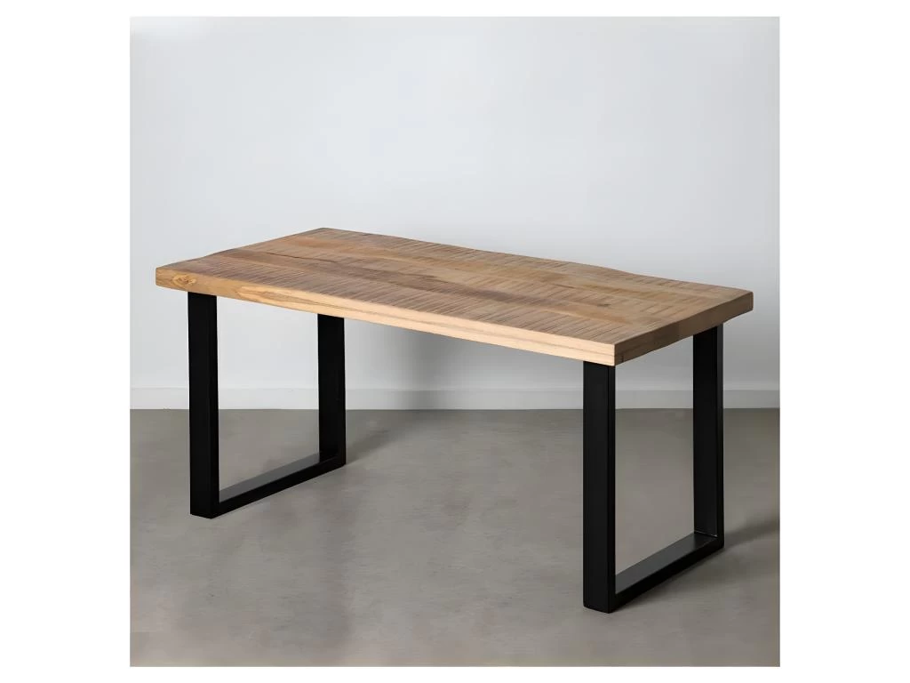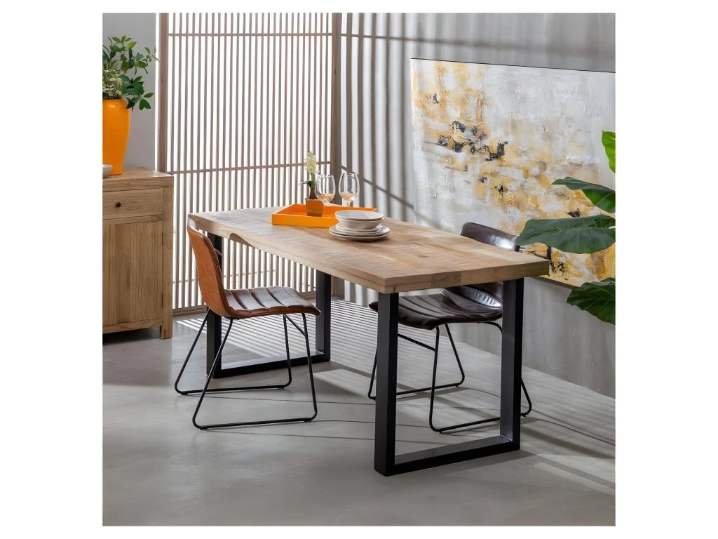 Le très grand potentiel décoratif ce cette table de salle à manger vient du mariage de matériaux à la très belle qualité perçue et des contours irréguliers de son plateau épais, elle deviendra un point clef d’une déco tendance mobilier Industriel.