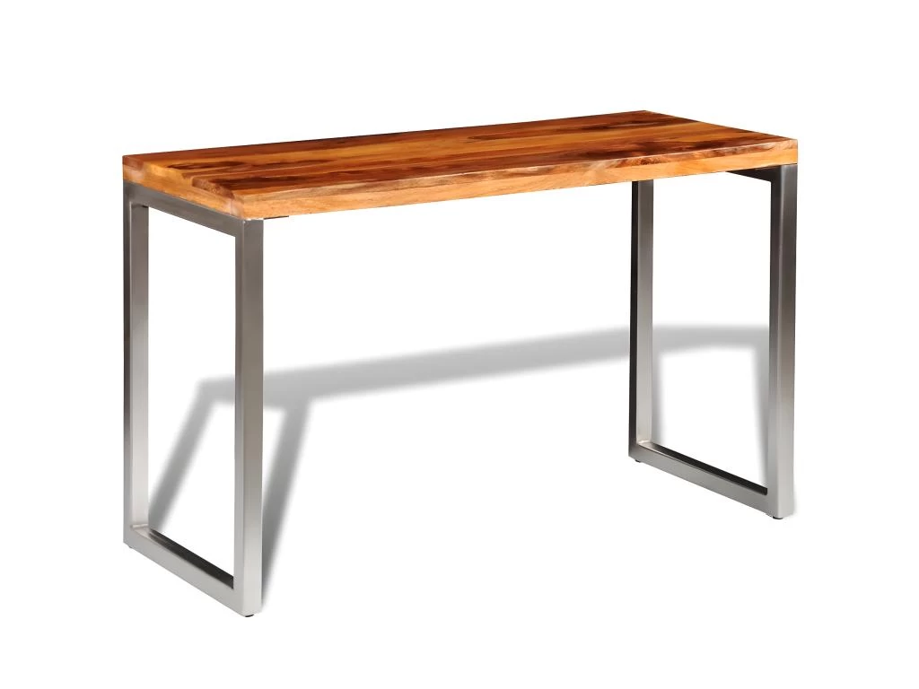 - Matériau : dessus de table en bois de sesham + pieds en acier