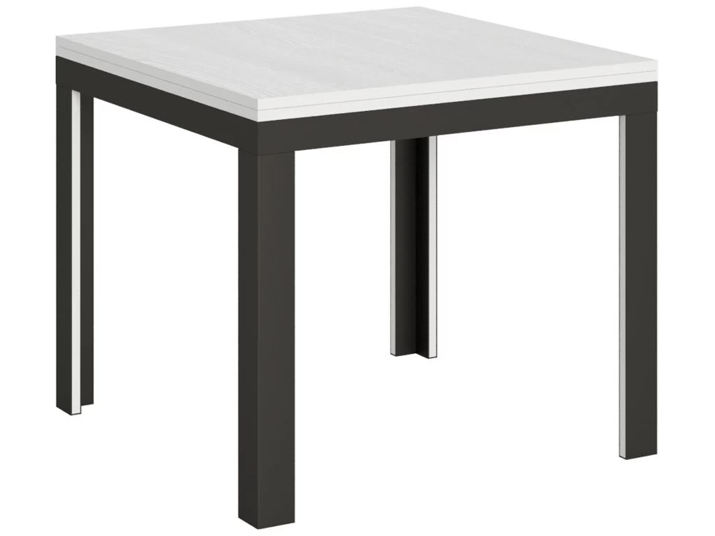 Table Extensible Portefeuille 90×90/180 Cm Linea Libra Frêne Blanc Cadre Anthracite