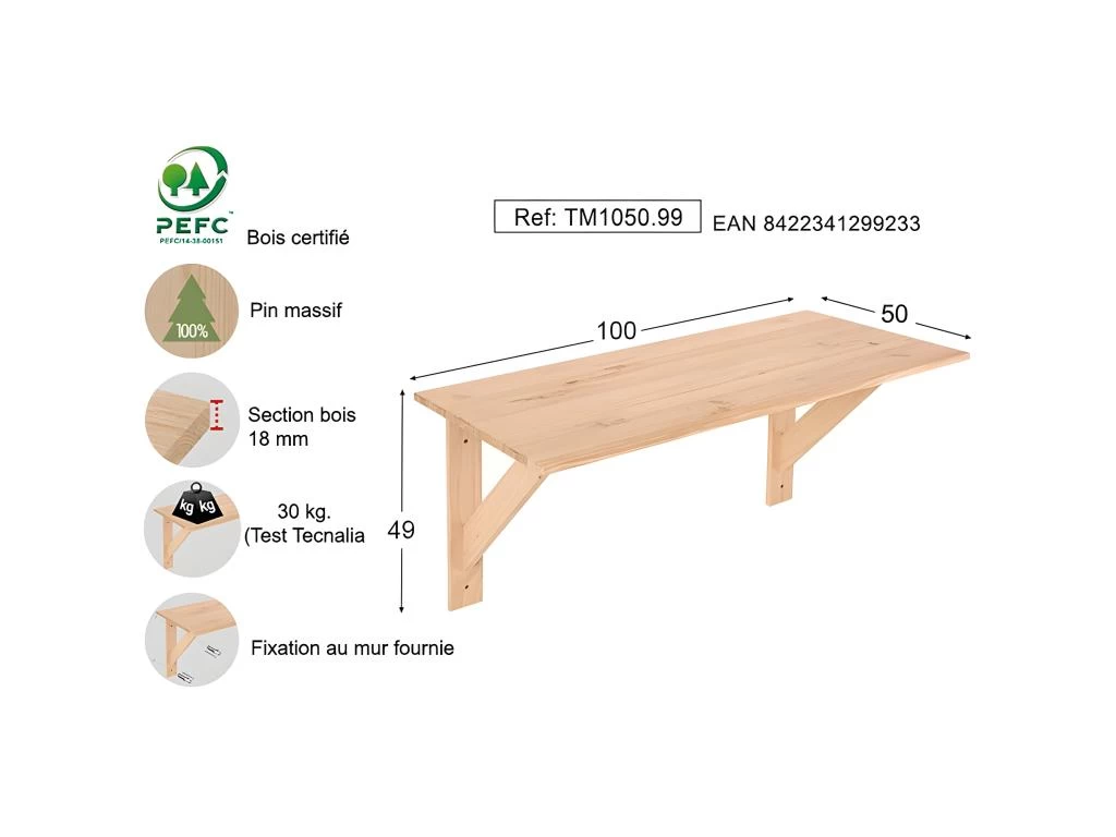 Informations complémentaires : Résistance 30 kgs , Bois certifié PEFC issu de foret gérées durablement , Prêt à peindre ou à vernir , Quincaillerie fournie