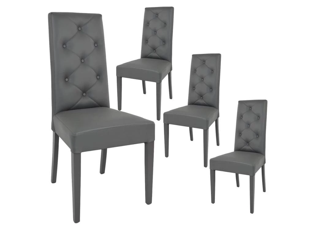 Lot de 4 Chaises Simili Gris et Pieds Laqués de la gamme Trevi.